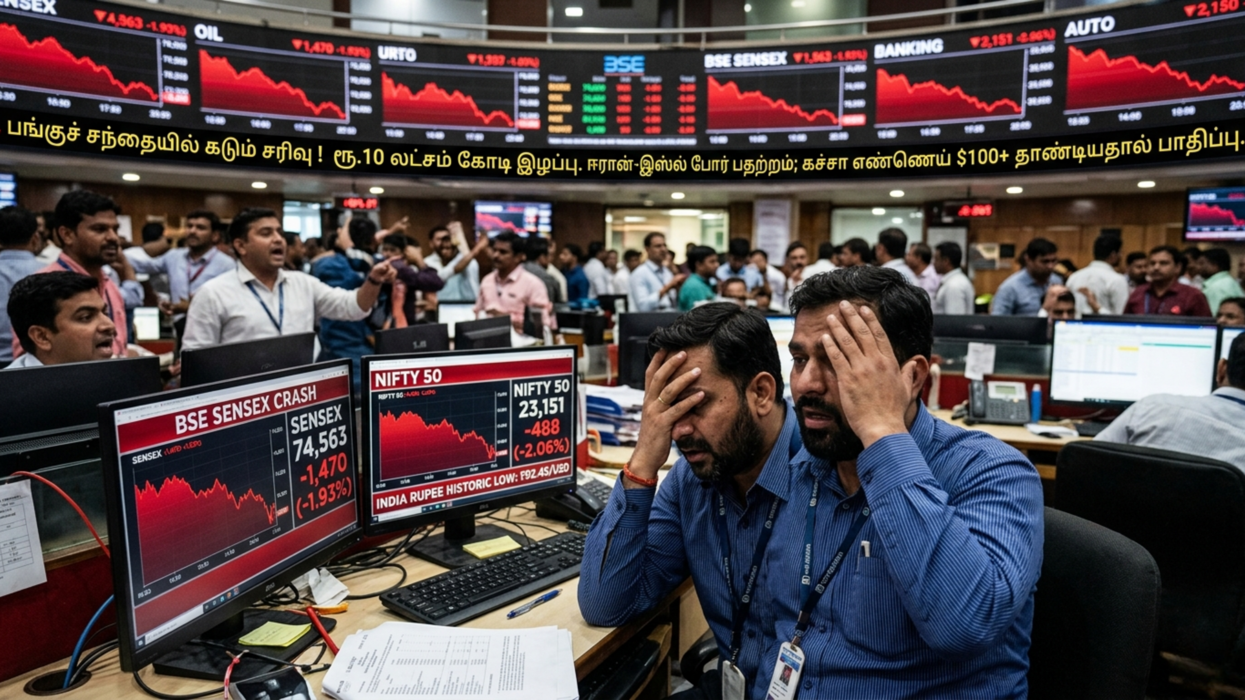 Tags: BSE Sensex FallCrude Oil Price RiseGlobal Economic Crisis 2026Indian Rupee All-Time LowIndian Stock Market CrashIran-Israel Conflict ImpactNSE Nifty 50 DropShare Market News Tamil