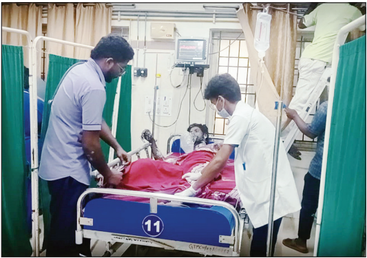 அப்போது அங்கிருந்த ஊழியர்கள் ஓடிவந்து உடனடியாக தீயை அணைத்தனர். பின்னர் 108 ஆம்புலன்ஸ் மூலம் திருவண்ணாமலை அரசு 11 மருத்துவமனைக்கு அனுப்பி வைத்தனர். அங்கு தீவிர சிகிச்சைப்பிரிவில் குமாருக்கு 45 % தீக்காயமும், மனைவி பூங்கொடிக்கு 30% தீக்காயமும் ஏற்பட்டு இருந்த நிலையில் மேல் சிகிச்சைக்காக சென்னை கீழ்ப்பாக்கம் அரசு மருத்துவமனைக்கு இருவரையும் அனுப்பி வைத்தனர்.