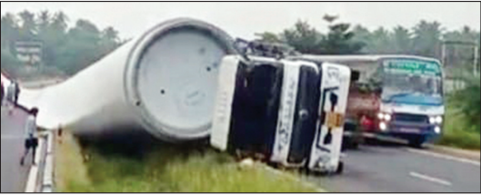 தூத்துக்குடியில் இருந்து ஒருகன்டெய்னர் லாரிகாற்றாலை இறக்கைகள் ஏற்றிக்கொண்டு மகாராஷ்டிரா மாநிலத்துக்கு புறப்பட்டது.