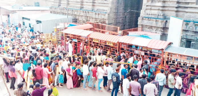 ராஜ கோபுரம் மற்றும் அம்மனி அம்மன் கோபுரம் வழியாக பக்தர்கள் கோவிலுக்குள் அனுமதிக்கப்பட்டு ஜிக்சாக் வரிசையில் சுமார் 3 மணி நேரம் நீண்ட வரிசையில் காத்திருந்து சாமி தரிசனம் செய்தனர் தரிசனம் முடிந்த பிறகு திருமஞ்சன கோபுரம் வழியாக பக்தர்கள் வெளியே செல்ல கோவில் நிர்வாகம் சார்பில் ஏற்பாடு செய்யப்பட்டு இருந்தது.