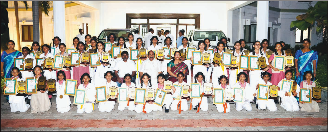 பள்ளியின் நிர்வாக இயக்குநர் டாக்டர் எ.வ. வே. கம்பன் சாதனை படைத்த மாணவிகளைப் பாராட்டினார்.