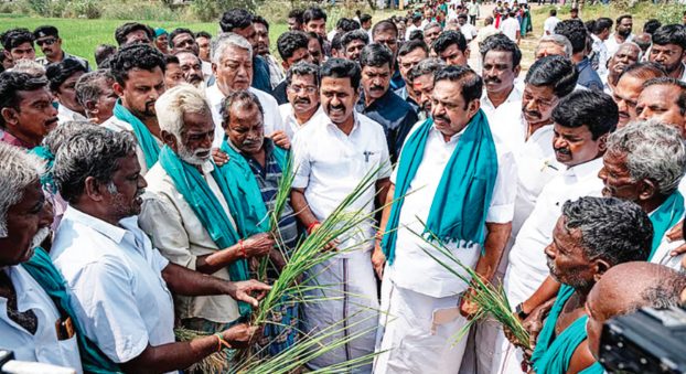 தஞ்சாவூர் மாவட்டம் திருவையாறில் நேற்று காலை திருமண விழாவில் பங்கேற்ற பின்னர், எடப்பாடி கே.பழனிசாமி திருச்சிக்கு செல்லும் வழியில் வண்ணாரப்பேட்டைஎன்ற இடத்தில், விவசாயிகளை சந்தித்தார்.