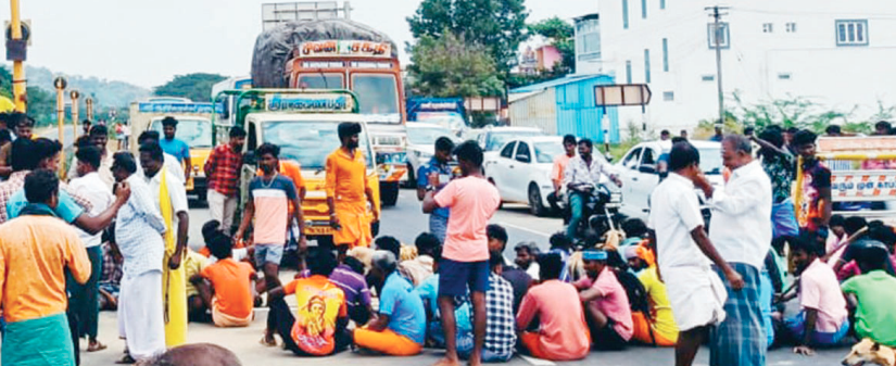20 ஊர் கிராம மக்கள் திண்டுக்கல்-திருச்சி நான்கு வழிச்சாலையில் அய்யலூரை அடுத்து உள்ள கடவூர் பிரிவில் வேட்டை நாய் குலன் நடு சாலையில் அமர்ந்து திடீர் மறியல் போராட்டத்தில் ஈடுபட்டனர். இதனால் கடுமையான போக்குவரத்து நெரிசல்ஏற்பட்டது.