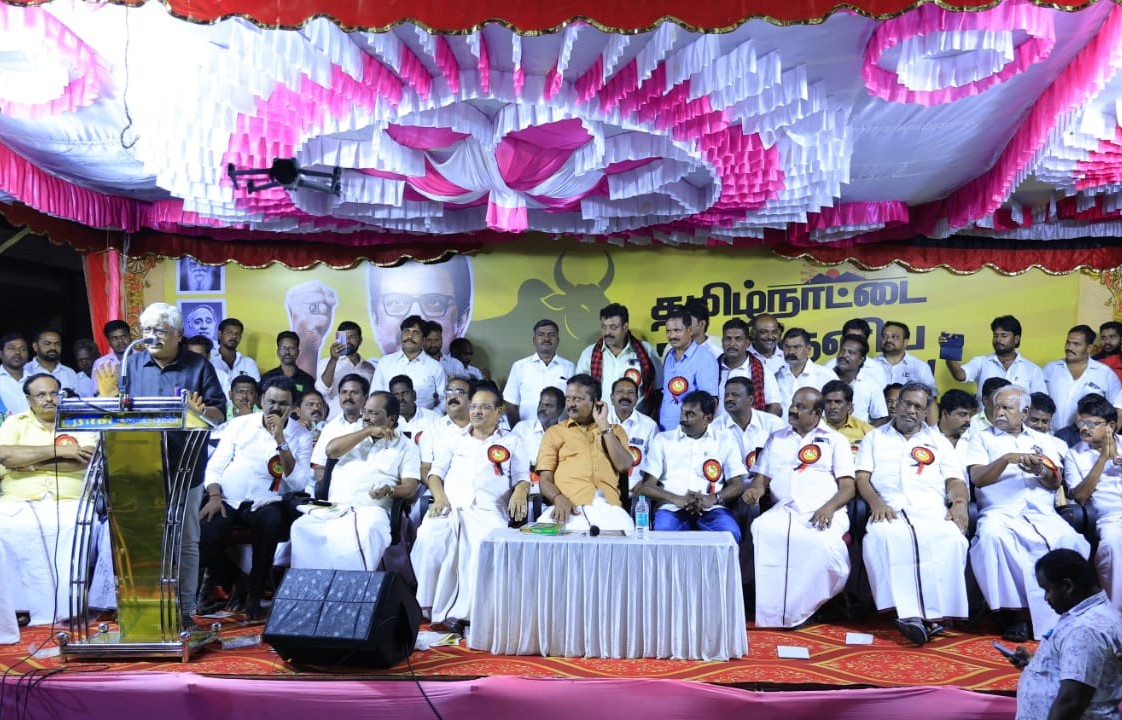 முன்னாள் ஆளுநர் தமிழசை சௌந்தராஜன் இப்போது பேசி இருக்கின்றார். திமுகவை வீட்டிற்கு அனுப்பும் ஆசை எங்களுக்கும் இருக்கிறது. விஜய்க்கும் இருக்கிறது. இது புதிய கூட்டணி. அறிவிக்கப்படாத கூட்டணி. புரிந்து கொள்ளுங்கள். உங்களை வீட்டிற்கு அனுப்பும் கடமை மக்களுக்கு உள்ளது.. ஏற்கனவே உங்களை வீட்டிற்கு அனுப்பி விட்டார்கள். காமராஜர், ராஜாஜி இருவரும் இருக்கும் போதே வீழ்த்த முடியாத இயக்கம் திமுக. நீங்களும் (பிஜேபி) விஜய்யும் இணைந்து விளையாட்டைத் தொடங்கலாம் தவிர வெற்றி பெற முடியாது. இவ்வாறு அவர் பேசினார்.