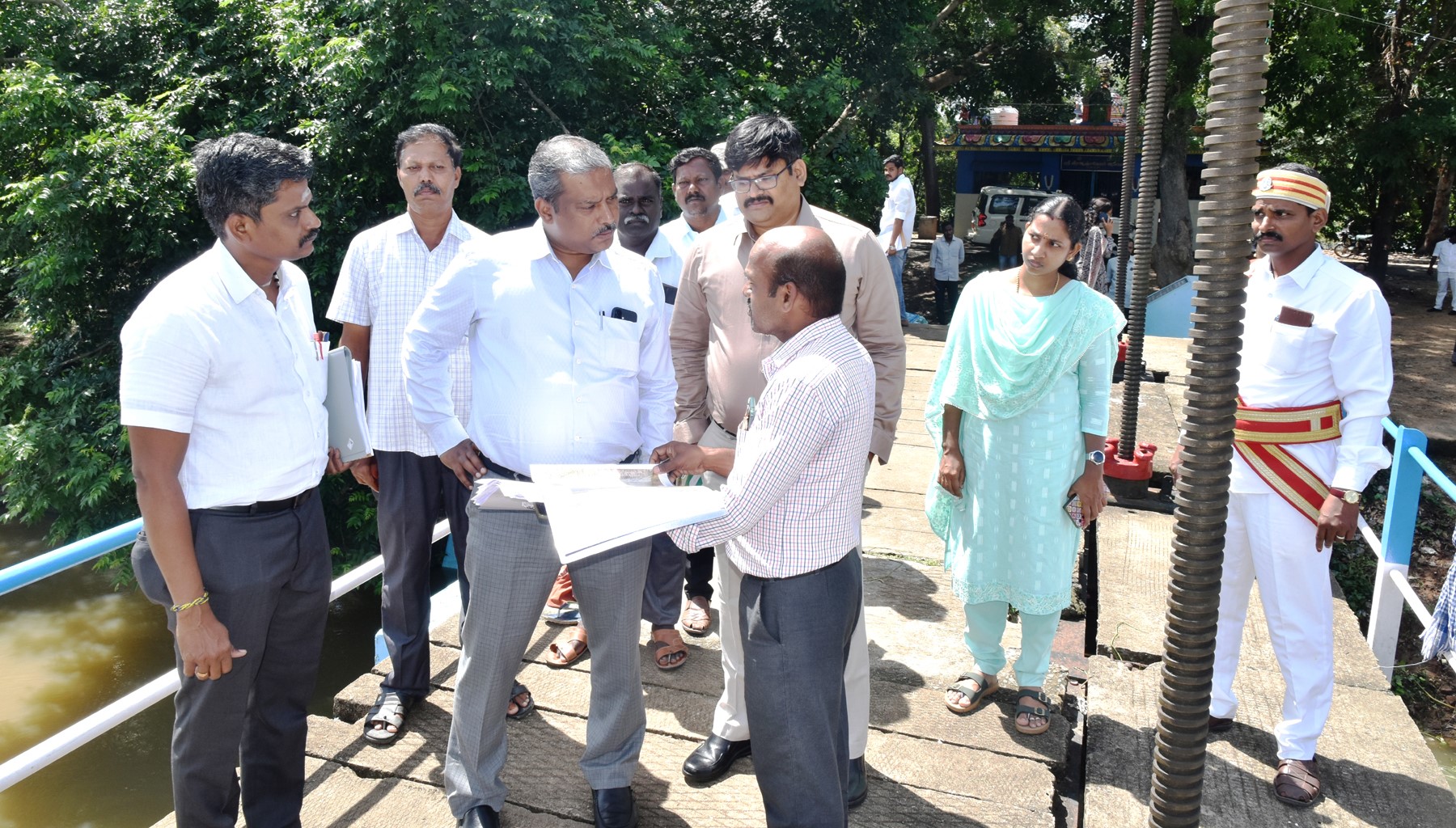 ஆய்வின் போது, தமிழ்நாடு நுகர்பொருள் வாணிபக்கழக முதுநிலை மண்டல மேலாளர் சரவணன், வருவாய் கோட்டாட்சியர்கள் சத்யா (திருவாரூர்) யோகேஸ்வரன் (மன்னார்குடி), மாவட்ட ஆட்சியரின் நேர்முக உதவியாளர் (வேளாண்மை) ஜெயசீலன், உதவிக் கோட்டப்பொறியாளர் நெடுஞ்சாலைத்துறை (கட்டுமானம் (ம) பராமரிப்பு) மாரிமுத்து, உதவி செயற்பொறியாளர் (வெண்ணாறு) மாணிக்கவேல், உதவி பொறியாளர் கோவிந்தராஜன், வட்டாட்சியர்கள் ஸ்டாலின் (திருவாரூர்), வசுமதி (கூத்தாநல்லூர்) உள்ளிட்ட அரசு அலுவலர்கள் உடனிருந்தனர்.