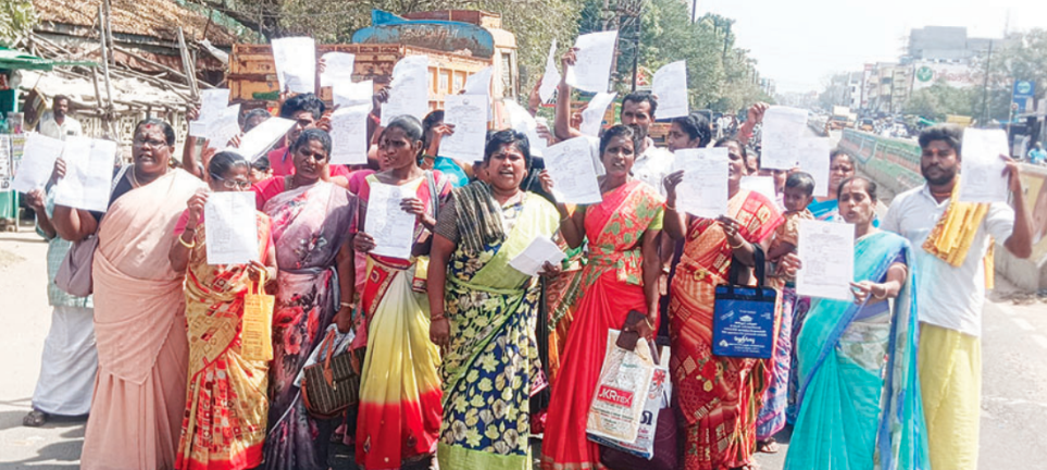 பல மாதங்கள் ஆகியும் நடவடிக்கை எடுக்காததால், புதிதாகபட்டா பெற்றவர்கள் தங்களுக்கான இடத்தை விருத்தாசலம் வருவாய் துறையிடம் பலமுறை முறையிட்டும் நடவடிக்கை எடுக்கவில்லை. இந்நிலையில் காட்டுங்கள் என கூறி பட்டா பெற்ற பெற்ற மக்கள் விருத்தாசலம் தாலுகா அலுவலகத்திற்கு திரண்டு வந்து தங்களுக்கு வழங்கப்பட்டபட்டாஇங்கே இருக்கிறது. எங்களுக்கான இடம் எங்கேஎன கோஷங்கள் எழுப்பி போராட்டத்தில் ஈடுபட்டனர்.