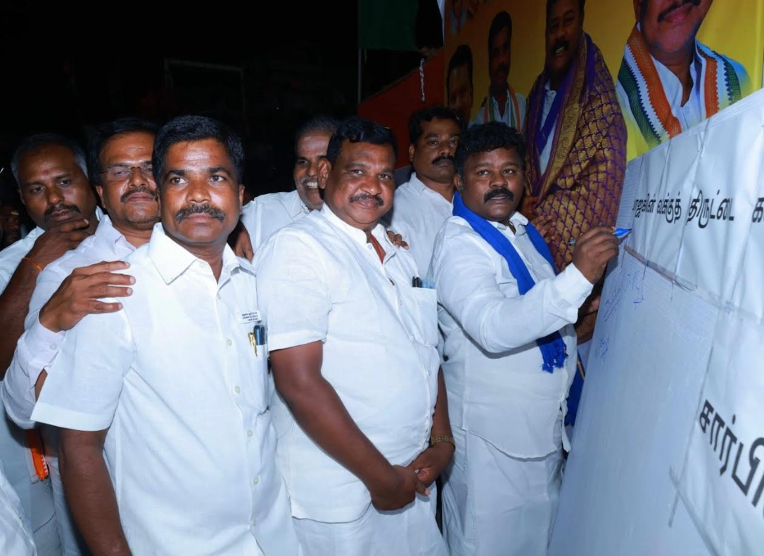 சேலம் மாநகர் மாவட்ட காங்கிரஸ் எஸ்.சி துறை சார்பில் பி.ஜே.பியின் வாக்குத் திருட்டை கண்டித்து காங்கிரஸ் கட்சி மாபெரும் கையெழுத்து இயக்கம் சேலம் அம்மாபேட்டை மிலிடெரி ரோடு ரவுண்டானாவில் நடைபெற்றது.