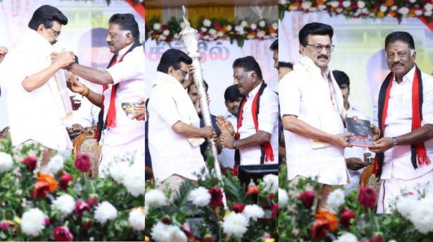 மதுரை மாவட்டம் திருமங்கலம் அருகே உள்ள ராயப்பாளையத்தில், ஓ.பன்னீர்செல்வம் தலைமையிலான ‘அதிமுக தொண்டர்கள் உரிமை மீட்புக் குழு’ திமுகவுடன் இணையும் விழா நேற்று நடைபெற்றது. தமிழக முதல்வர் மு.க.ஸ்டாலின் முன்னிலையில், ஓ.பி.எஸ் மற்றும் அவரது ஆதரவாளர்கள் ஆயிரக்கணக்கானோர் திமுகவில் தங்களை இணைத்துக் கொண்டனர்.