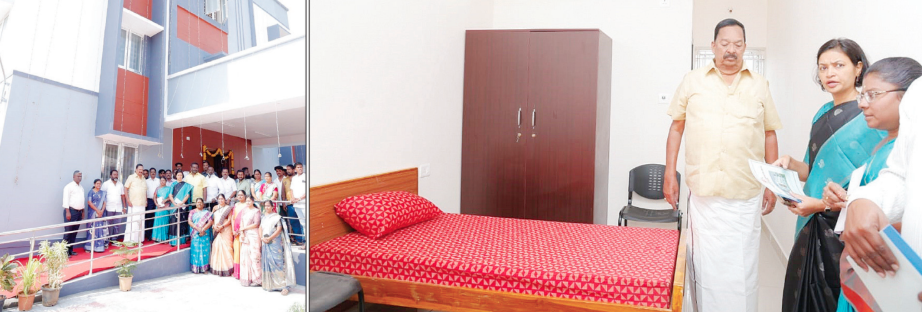 குறைந்த வாடகையில் வழங்கப்படவுள்ளன. மகளிரின் பாதுகாப்பான. தேவைகளை கருத்தில் கொண்டு, பணிபுரியும் பெண்கள் மட்டுமல்லாது பயிற்சி, உயர்கல்வி, நேர்காணல் போன்ற தேவைகளுக்காக நகரங்களுக்கு இடம் பெயரும் அனைத்து மகளிரின் தேவைகளையும் கருத்தில் கொண்டு குறுகிய கால தங்கும் வசதியையும் பயன்படுத்திகொள்ளும் வகையில் இவ்விடுதிகள் வமைக்கப்பட்டுள்ளன. இந்த முயற்சியின் மூலம், ஒரு சாதாரண விடுதி மட்டுமல்லாமல், பெண்கள் மரியாதையுடன் தன்னம்பிக்கையுடன் மற்றும் மனநிம்மதியுடன் வாழக்கூடிய பாதுகாப்பான சூழலை உருவாக்குவதே தமிழ்நாடு முதலமைச்சர் அவர்களின் நோக்கமாகும். இவ்வாறு அமைச்சர் பேசினார்.
