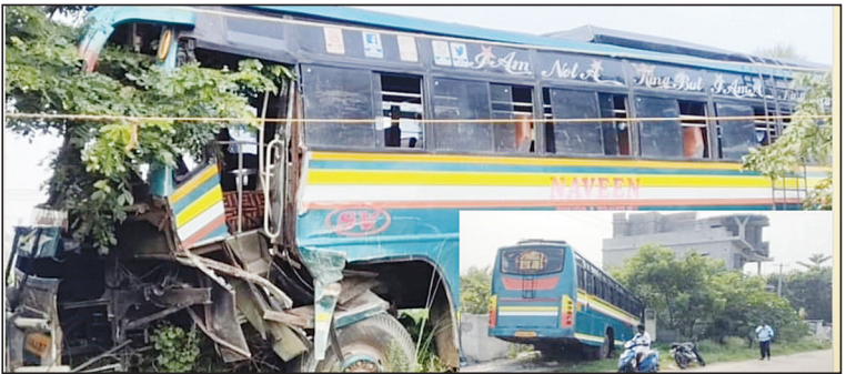 இந்நிலையில் சிதம்பரம் அருகே வயலூர் கிராமத்தில் அருகில் வந்த போது பேருந்து கட்டுப்பாட்டை இழந்து சாலையோரம் இருந்த மரத்தின் மீது மோதி விபத்து ஏற்பட்டது