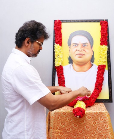 இந்த நிலையில், பனையூரில் அமைந்துள்ள த.வெ.க. அலுவலகத்தில் பசும் பொன் முத்துராமலிங்கத் தேவரின் உருவ படத்திற்கு அக்கட்சியின் தலைவர் விஜய் நேற்று மரியாதை செலுத்தினார்.